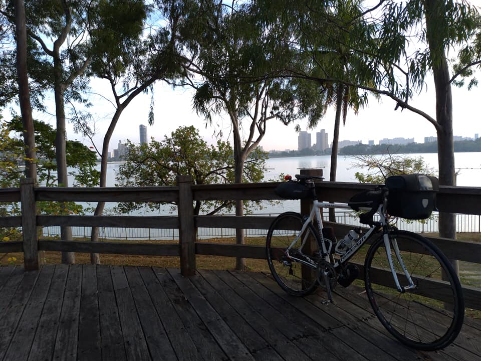 さまざまな手続きやら何やらで意外に時間がかかり、高鉄(台湾新幹線)の終点、左営駅(高雄市)に到着したのは15時ちょっと前。予定よりも3時間ほど遅れました。プラプラと見物ライドを楽しむつもりでしたが、さすがにスタート時点で陽が傾いているので焦ります。また、夕方のラッシュ時間と重なったので「原チャリの群」と一緒に走ることになり、屏東市の市街地までは下ハンを交えたガチ走行になりました。郊外のバナナ園やビンロウ林の中を走るようになるころにはクルマや原チャリもかなり少なくなり、やっと「いつものオレの走り」に戻ってきました。ええ、上ハンでのダラダラ走行です。